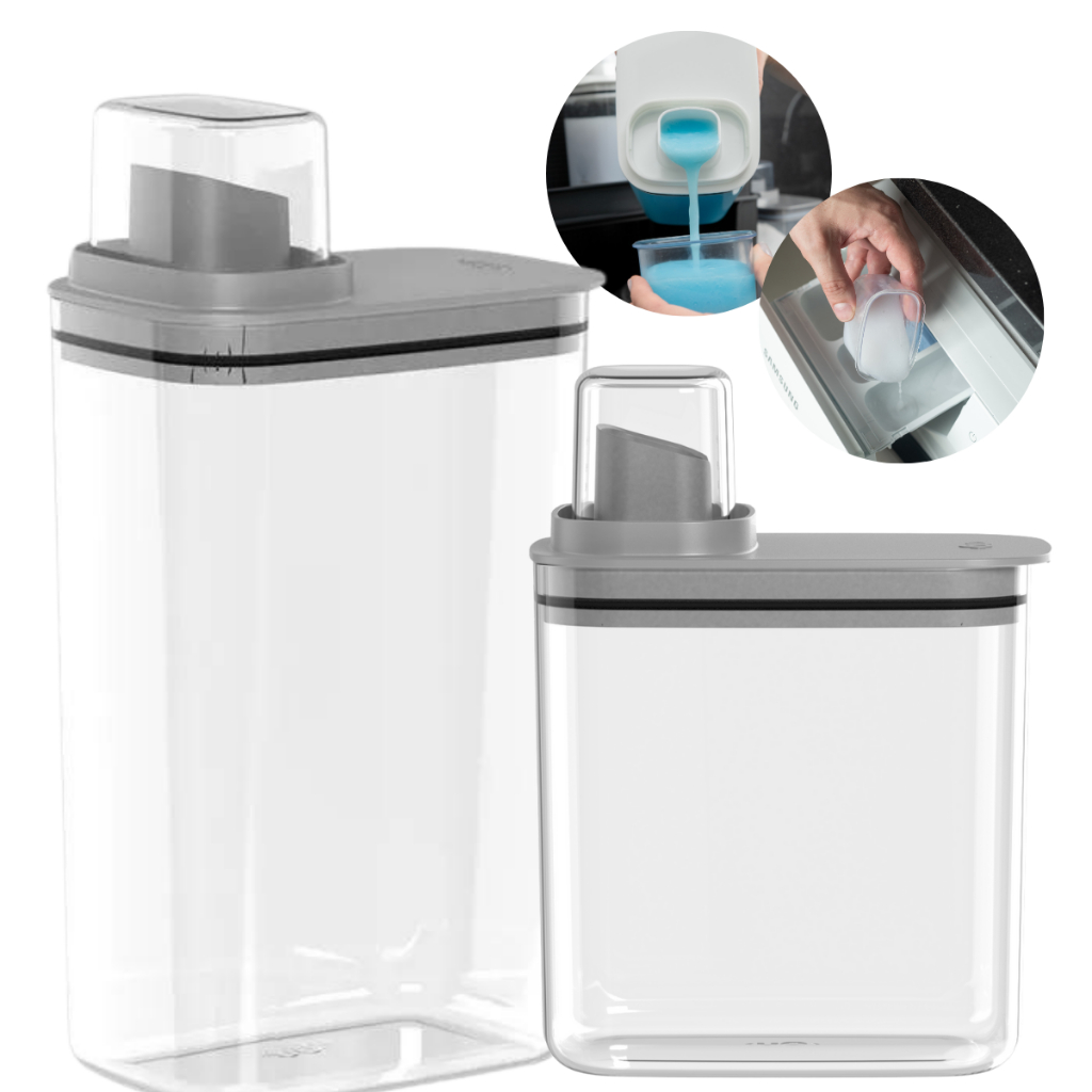 Kit Dispenser Organizador de Lavanderia 2,3 + 1,5 L Acrílico AMACIANTE SABÃO EM PÓ SABONETE LÍQUIDO