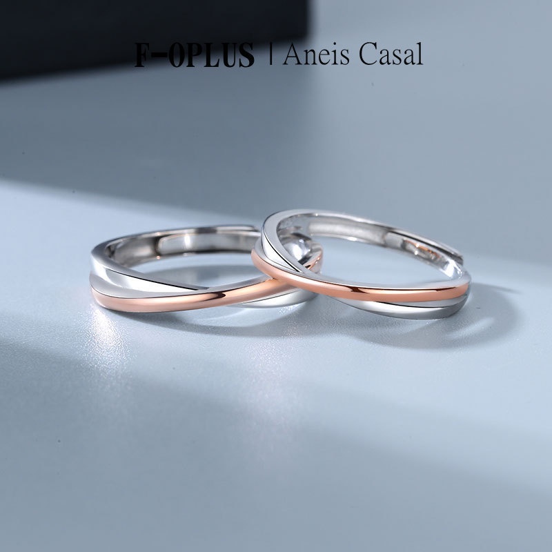 F-OPLUS | Aliança de Namoro Fina Mobius Ajustável Par Aliança Anel de Compromisso Namoro para Masculino e Feminino com Caixa CRC079