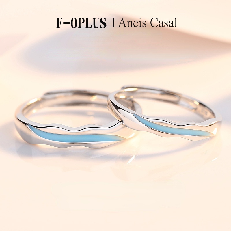 F-OPLUS | Aliança de Ondas Ajustável Par de Anel Aliança de Namoro Compromisso com Caixa CRC110