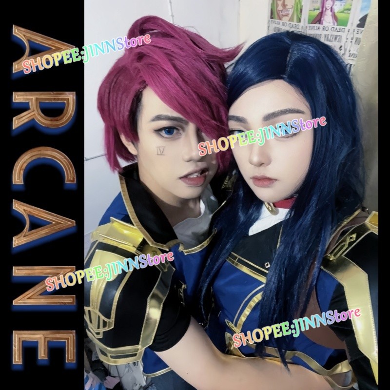 - JINN-CAITLYN & VI Cosplay League of Legends Arcane Série De TV VIOLET Uniformes Peruca Chapéu Conjunto Carnaval Festa