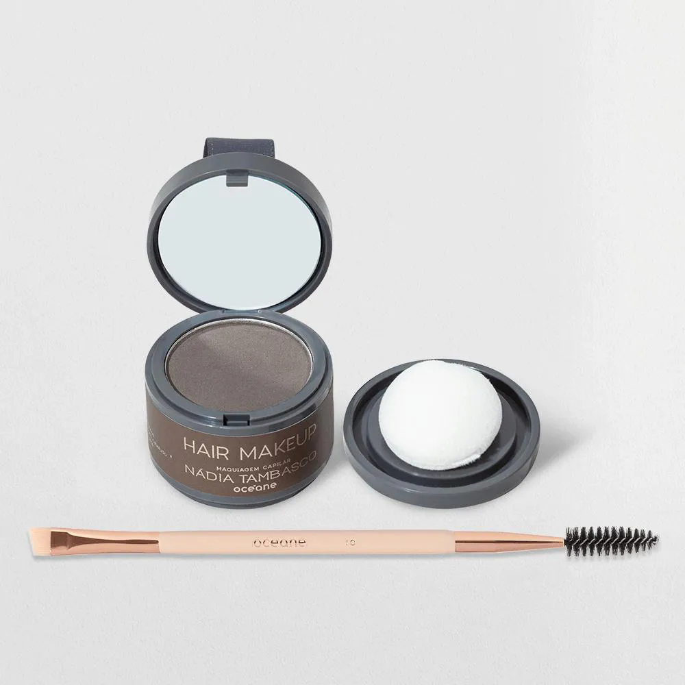 KIT RETOQUE SOBRANCELHAS - MAQUIAGEM CAPILAR CASTANHO ESCURO + PINCEL PARA SOBRANCELHAS (2 PRODUTOS)