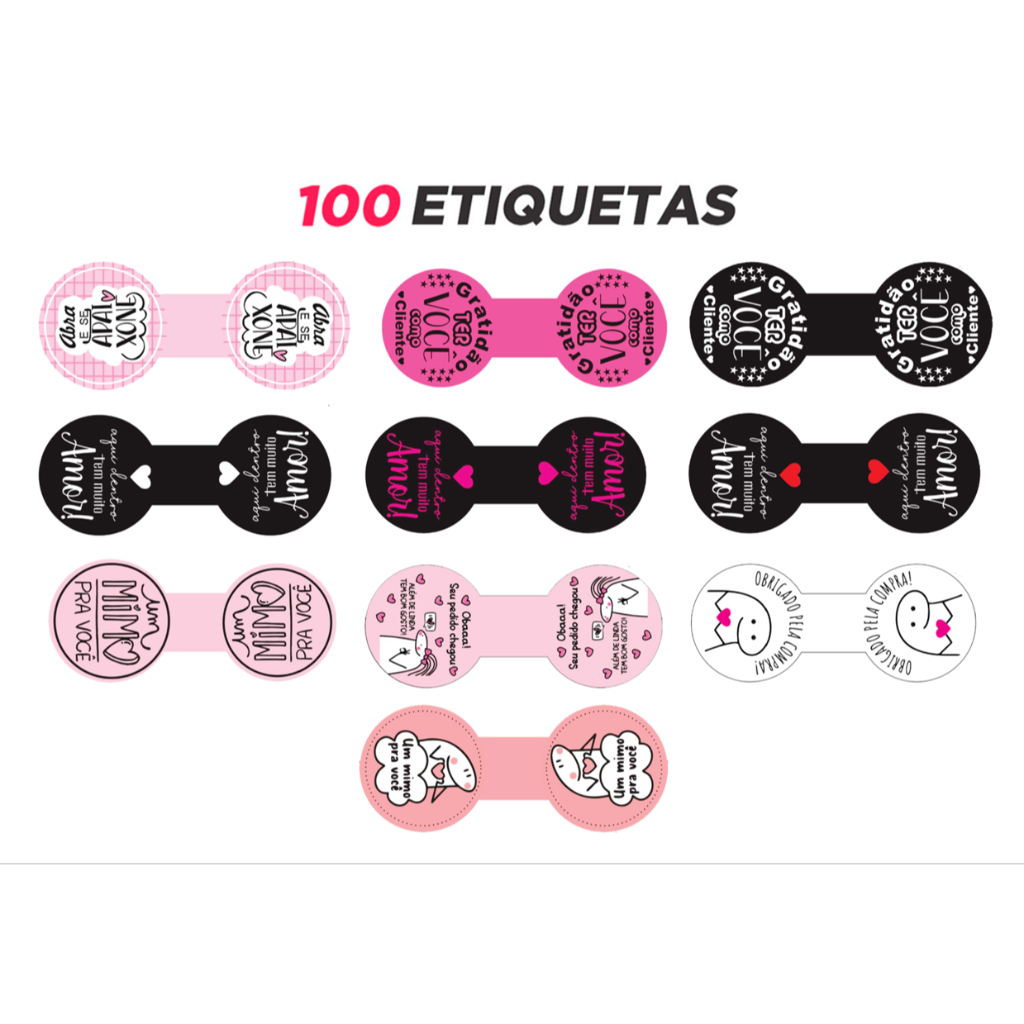 100 Etiquetas Adesivas - Lacre Fecha Sacola - Tam: 10 x 4 Cm