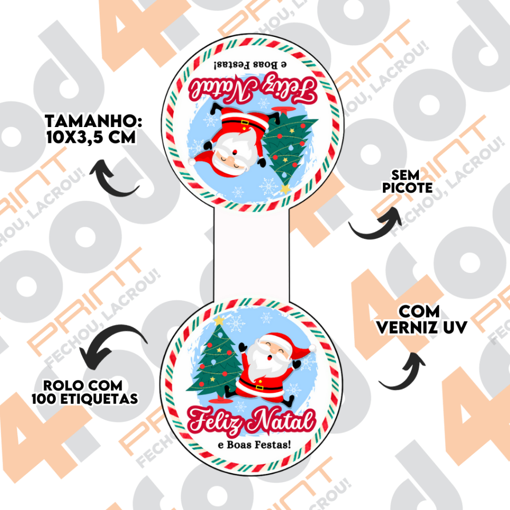 100 Etiquetas Adesivas - Lacre Fecha Sacola - Tam: 10 x 4 Cm - Natal -