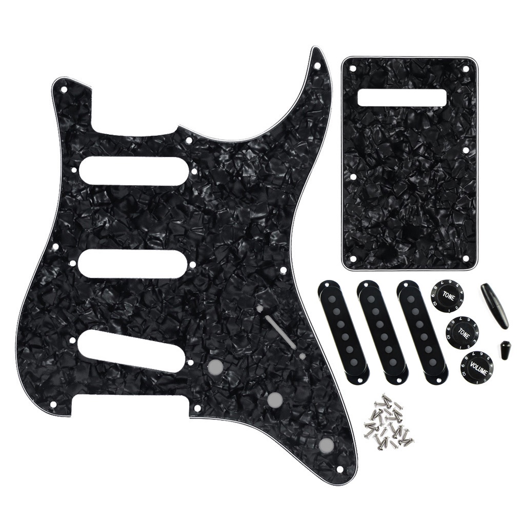 FLEOR Conjunto De 8 Furos SSS Guitar Pickguard & Back Plate 48/50/52mm Pickup Covers Knobs Switch Whammy Bar Dicas Para Guitarra ST