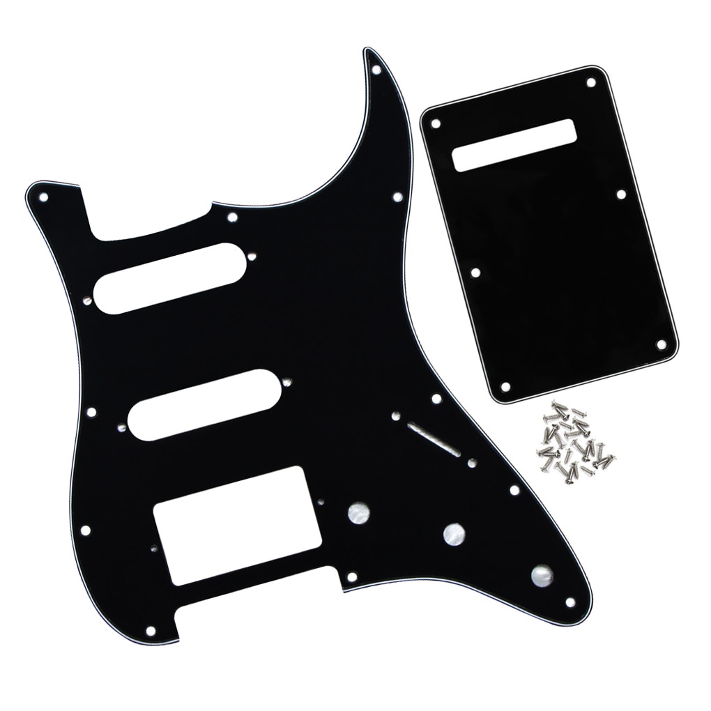 FLEOR Preto 3Ply Conjunto De Guitarra ST Pickguard SSH HSS Placa Traseira De Arranhão E Parafusos Para De 11 Furos