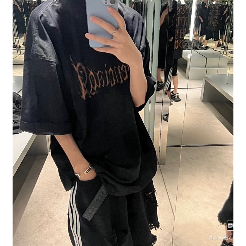 Street Wear New Estilo de lama de estilo sânscrito metálico de manga curta com pintura à mão Tecido de malha fixa Peso 260g Tecido Unisexo Top