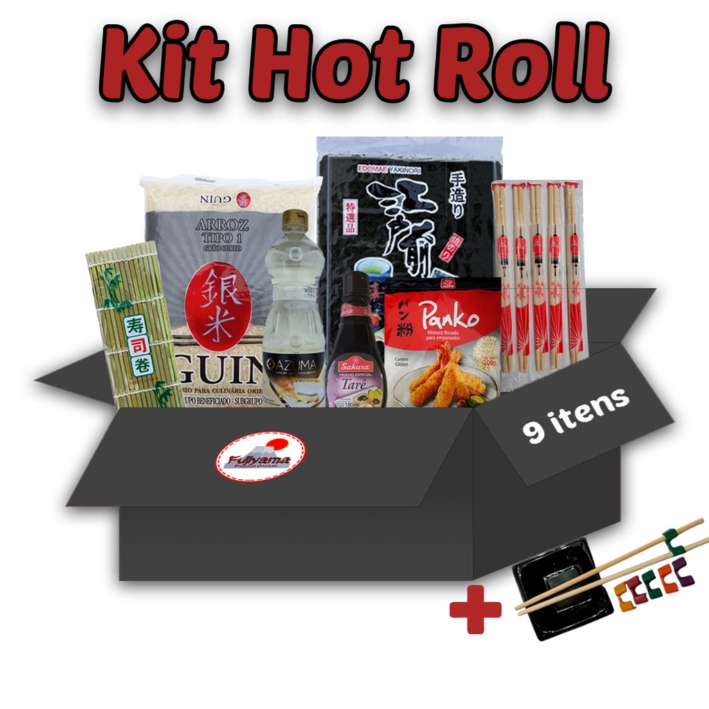 Kit Sushi Hot Roll com 10 itens - Arroz Grão Curto, Panko 1kg, Esteira, Alga, Molho tarê, Tempero, Vinagre