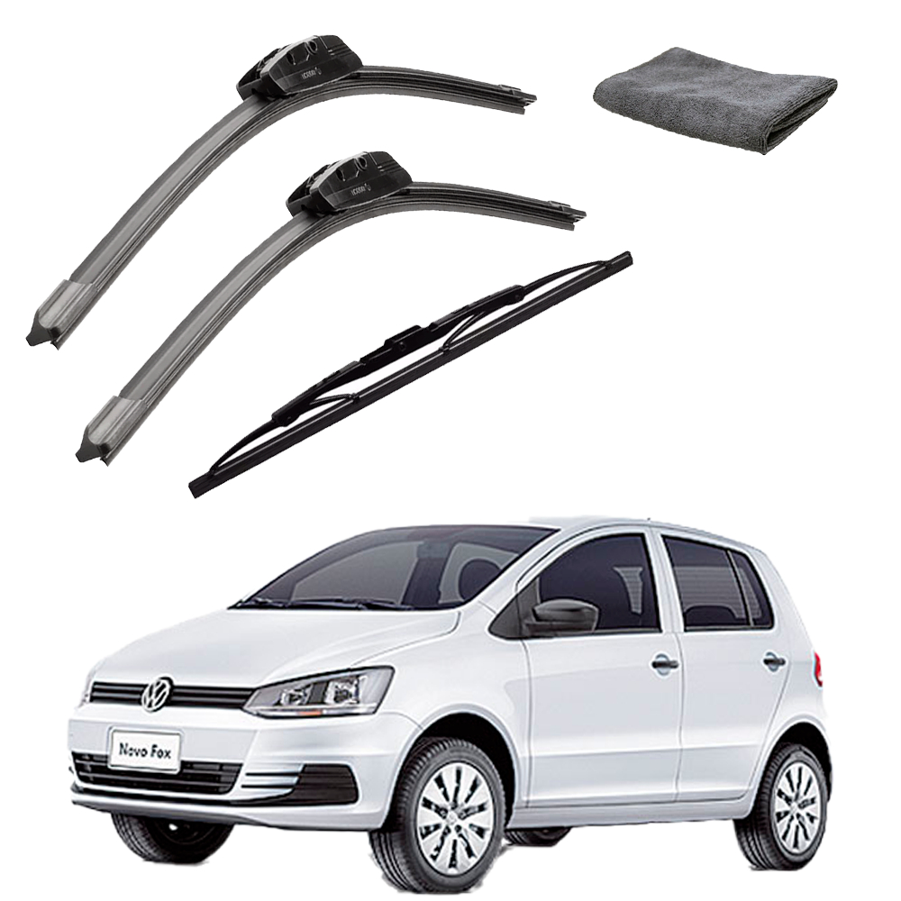Kit de 3 Palhetas para Limpador de Parabrisa Dianteiro e traseiro Vw Fox 2003 até 2018