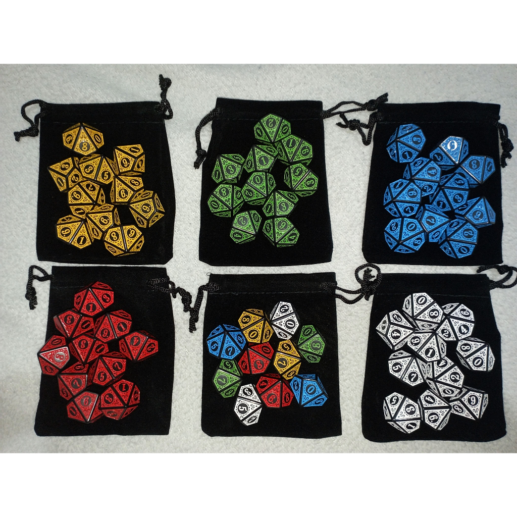 Kit De 7 Dados Para Rpg Perolizados + Bolsa Veludo Preta D&d DnD | Produto no Brasil | Várias Cores para Escolher | RPG Dice | Dado RPG