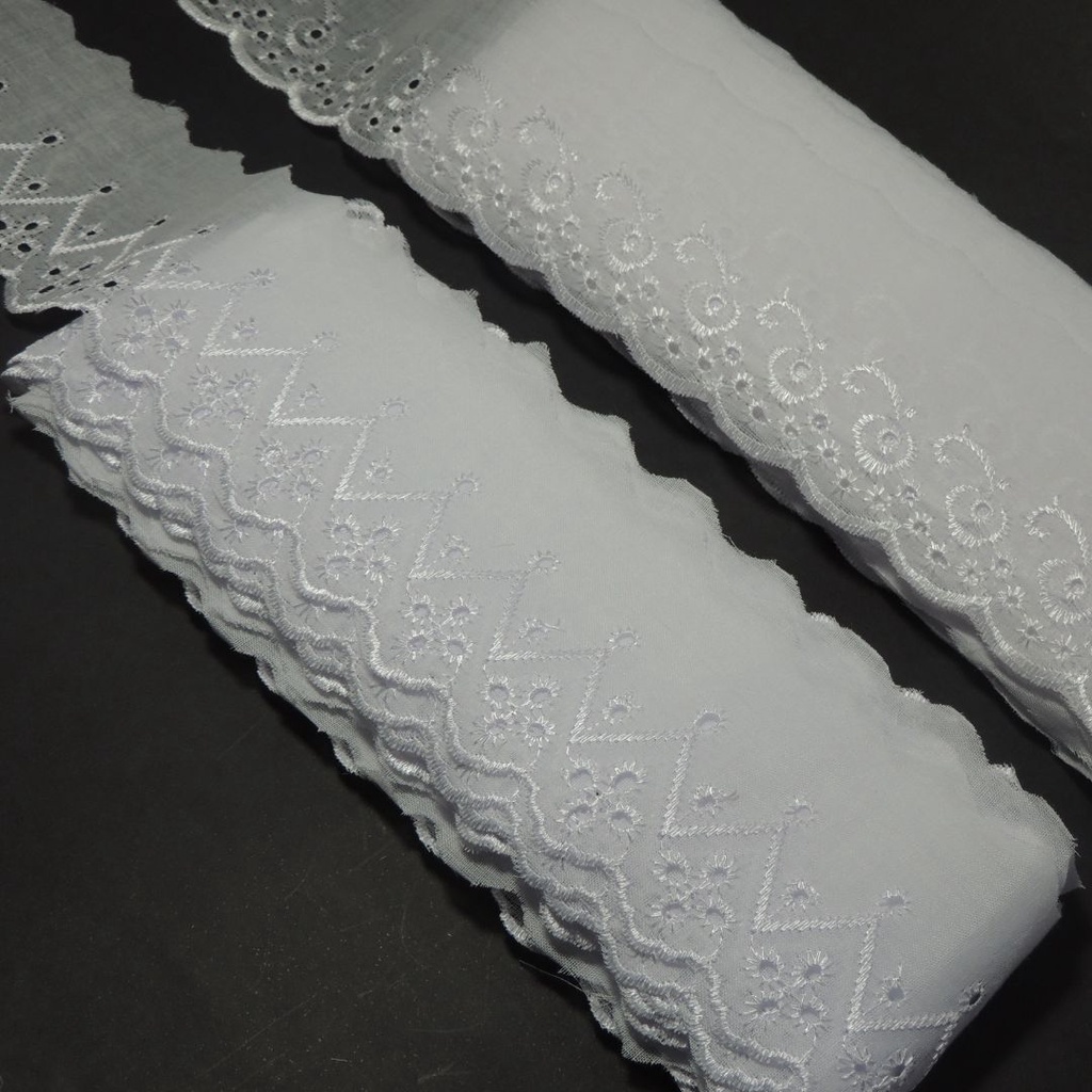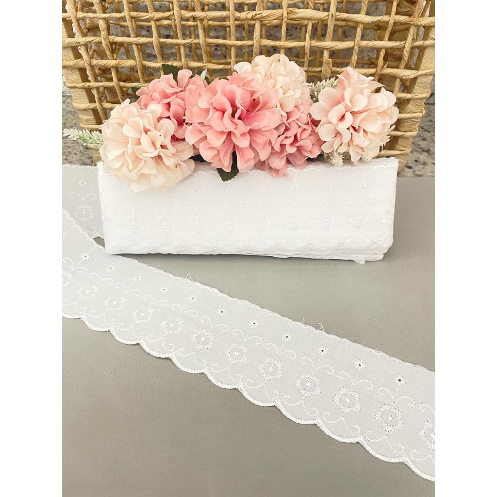 Bordado Inglês 7cm Peça com 13,7 metros - Lese Bico Tira Bordada - 90% Poliéster 10% Algodão