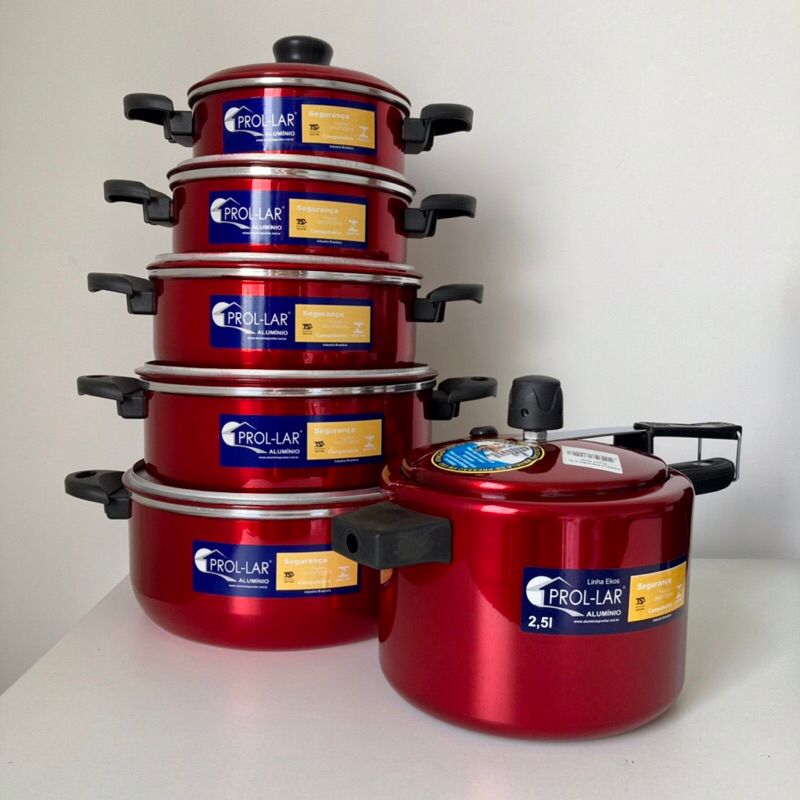 Jogo de Panelas Caçarolas 5 peças + Panela de Pressão 2,5 litros Aluminio Vermelho Rubi Excelente qualidade
