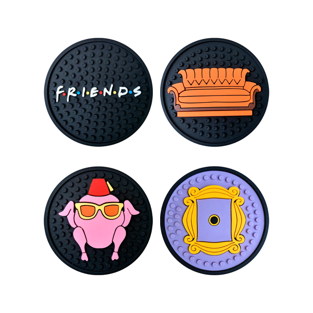 Kit 4 Porta Copos Emborrachados Família Friends Série Personagens Lavável Flexível