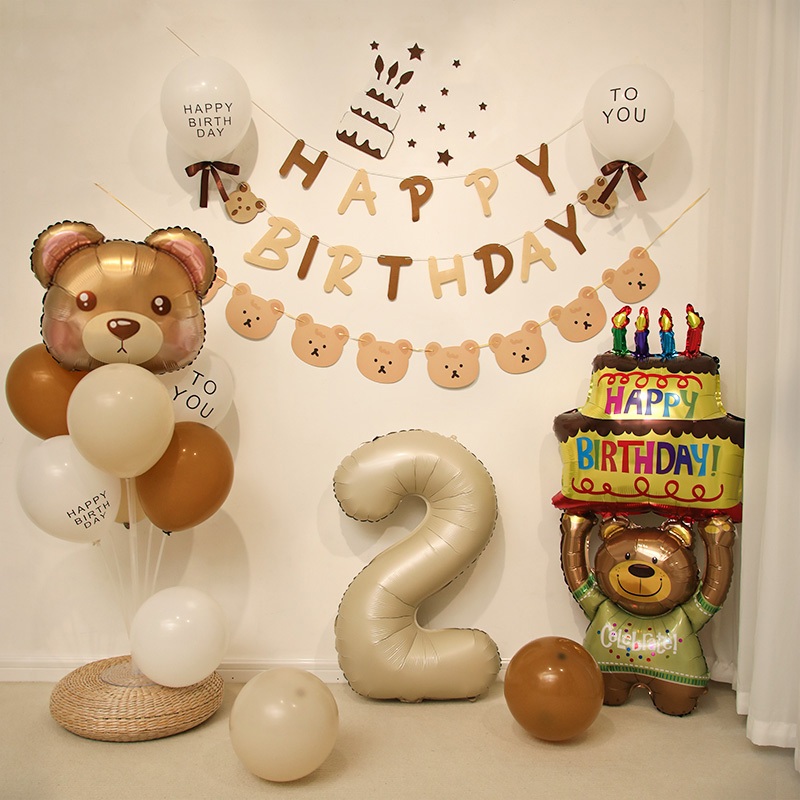 Decoração Da Festa De Aniversário Do Urso De Café Creme De Kit Porta Balões De Infantil Marrom O Primeiro 1o Um 2 3 4 Anos