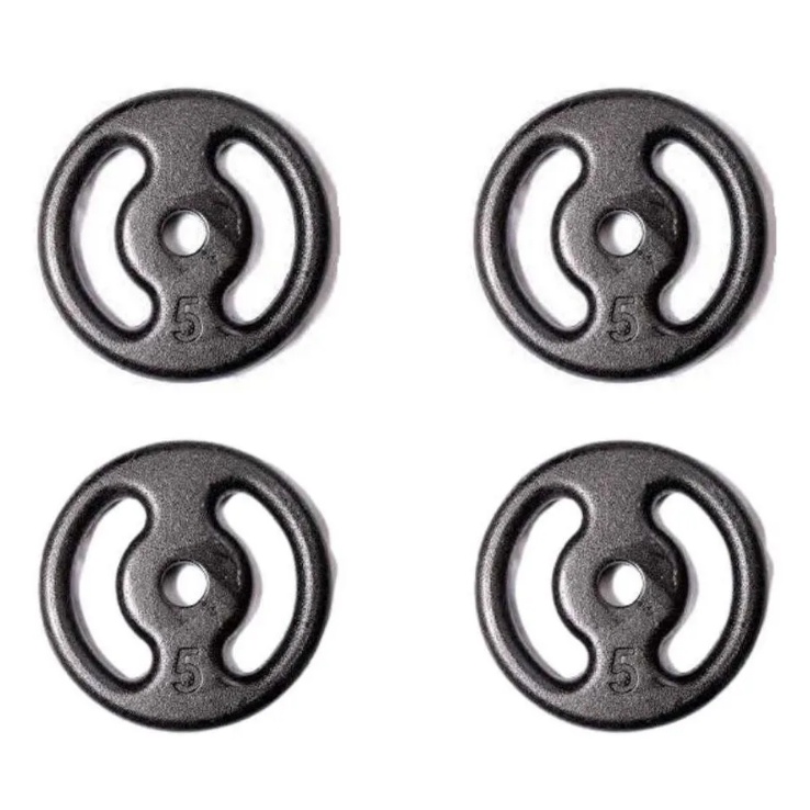 kit Anilhas de Peso 5 KG Pintadas Barras Halteres Musculação Academia Força Vazadas Fitness Levantamento 20 KG Total