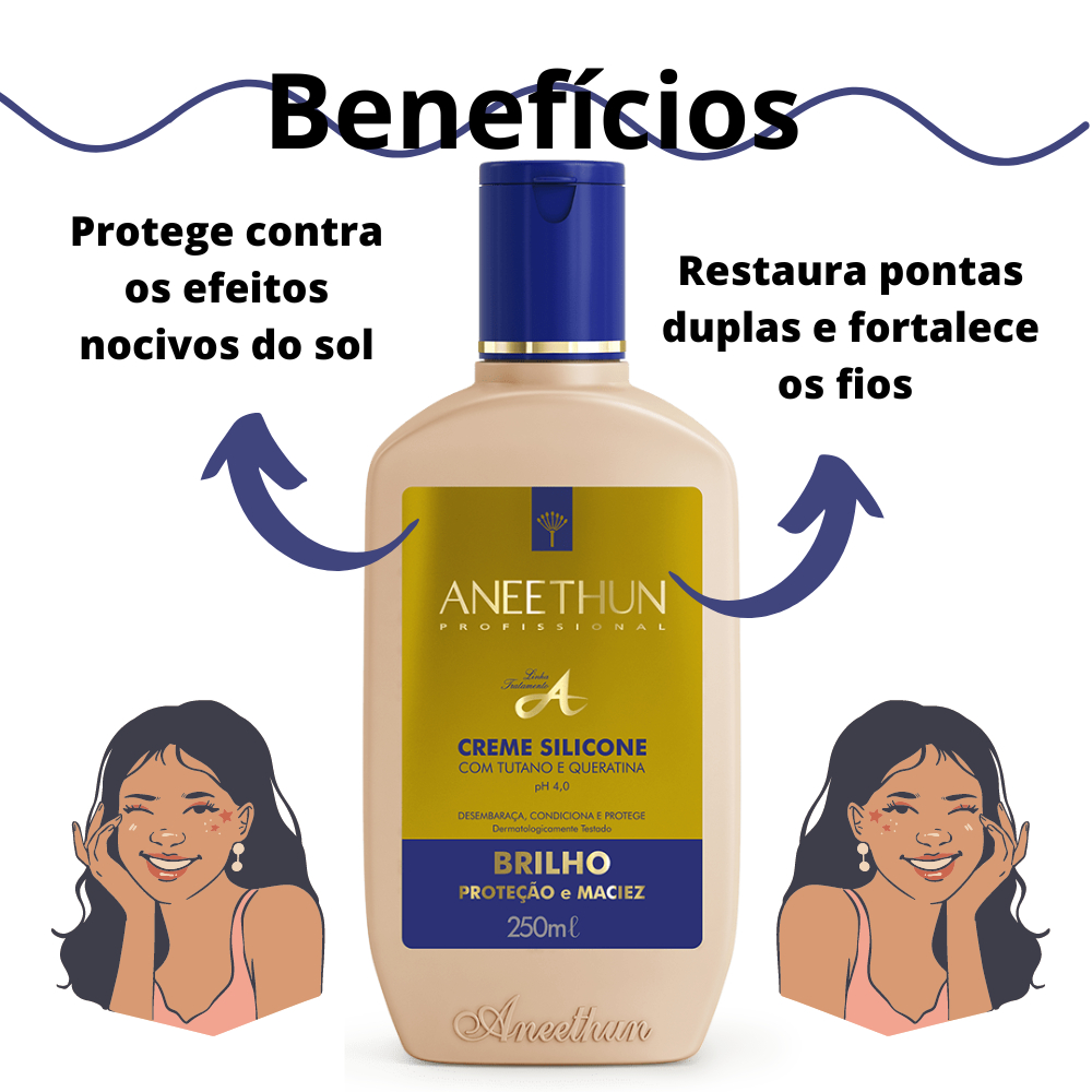 Kit Creme De Silicone 250ml Aneethun + Kit Escovas e Pentes