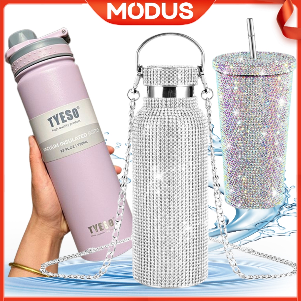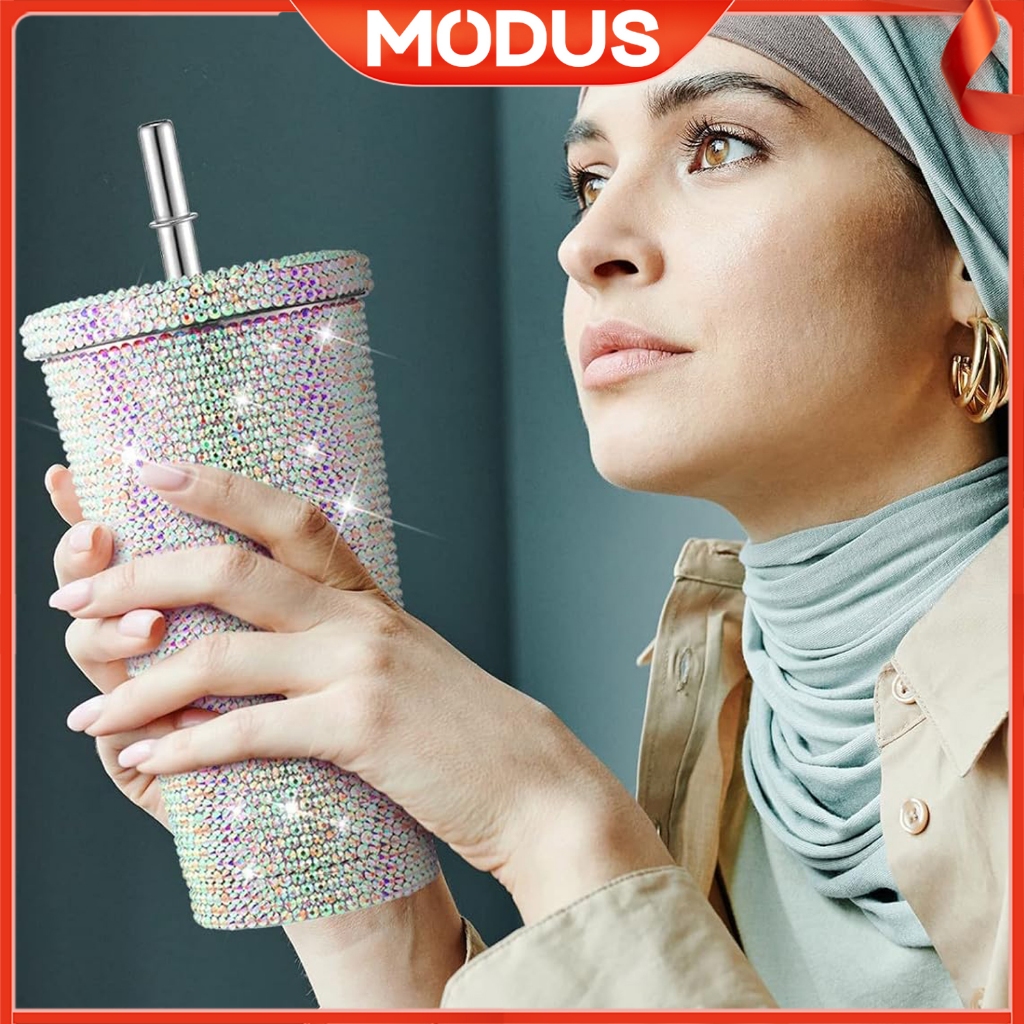 Garrafa Térmica 750ml Para Senhoras De Água Tumbler Bling Rhinestone De Aço Inoxidável Com Canudo Tampa