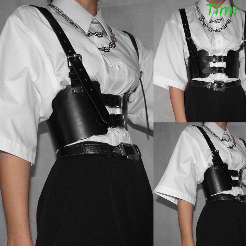 Timi Mulheres Sexy Cinto De Couro Falso Top Colheita Colete Harajuku Punk Gótico Harness Strap Underbust Corset Cincher Do Vintage