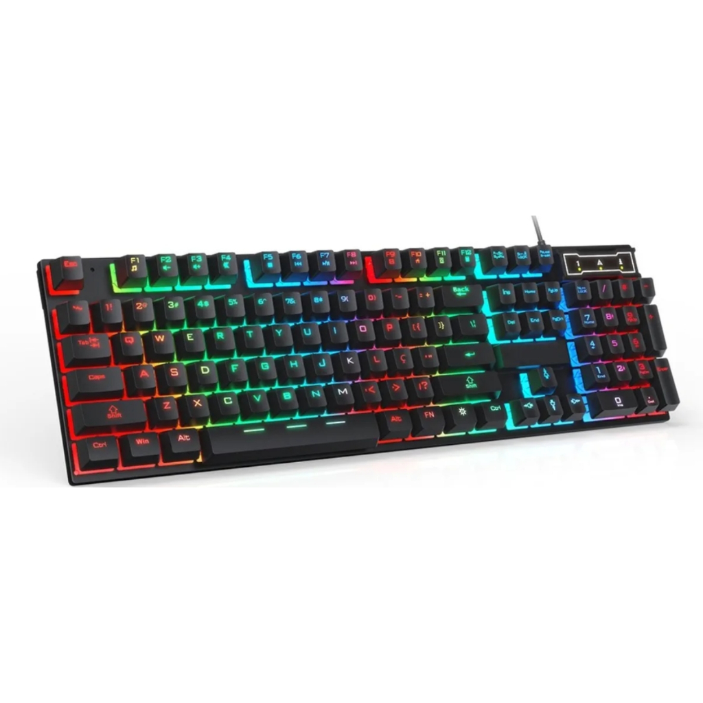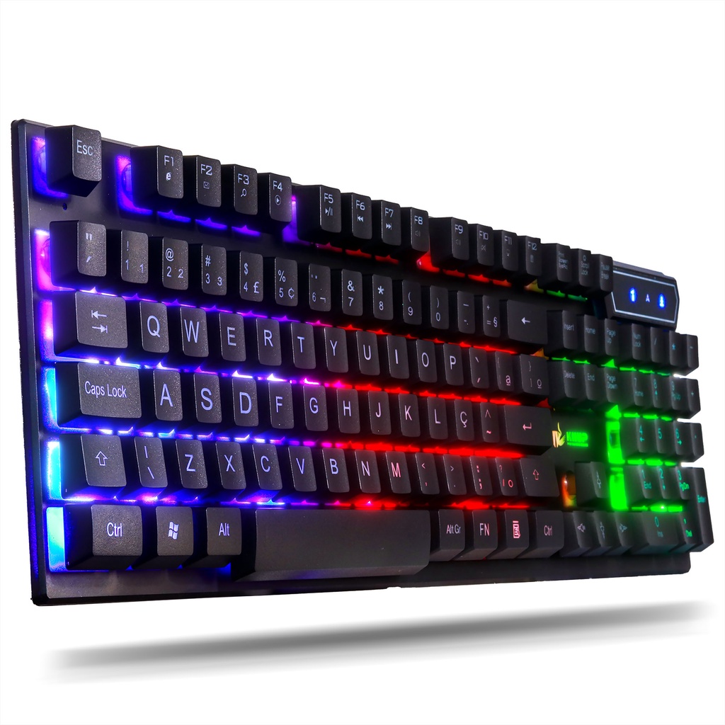 Teclado Gamer Semi Mecânico RGB LED Iluminado Multimídia USB