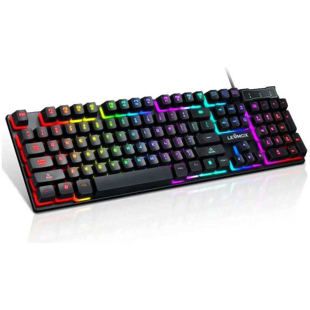 Teclado Gamer Led Rgb Com Fio Usb Semi-Mecânico Pt-br Preto Pc Iluminado Lehmox Ley-2086