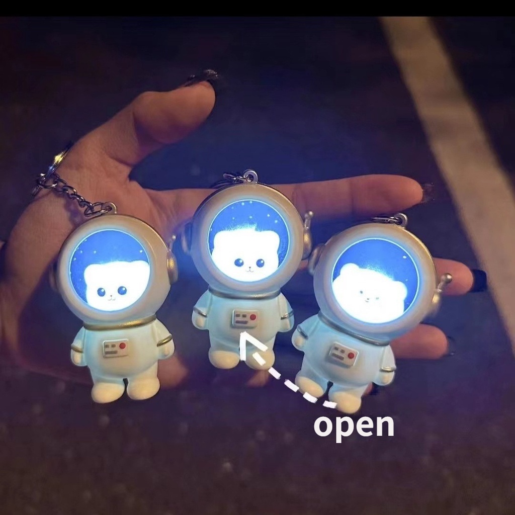 Chaveiro De Urso De LED Bonito Gato Charme Porta-Chaves Pingente Brilha No Astronauta Escuro Casal Amigos Melhor Presente Para O Natal