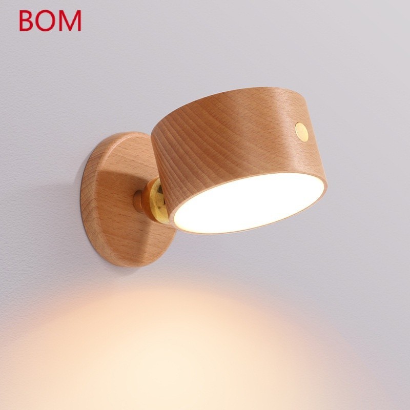 Lâmpada De Cabeceira De Madeira Lâmpada De Parede Do Quarto De Leitura Carregador USB LED Corredor Varanda Magnética EFG