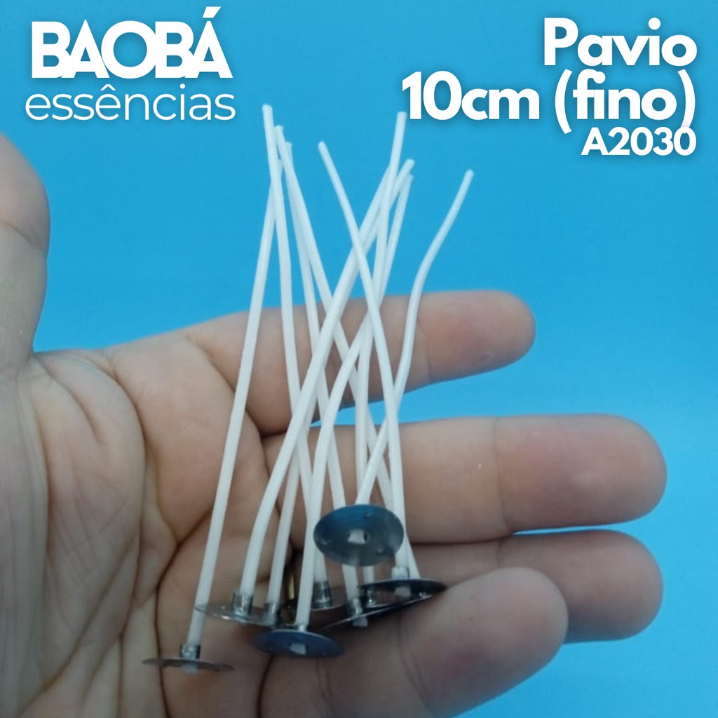 Pavio para vela Artesanal FINO - 10cm - Pacote 10 Unidades