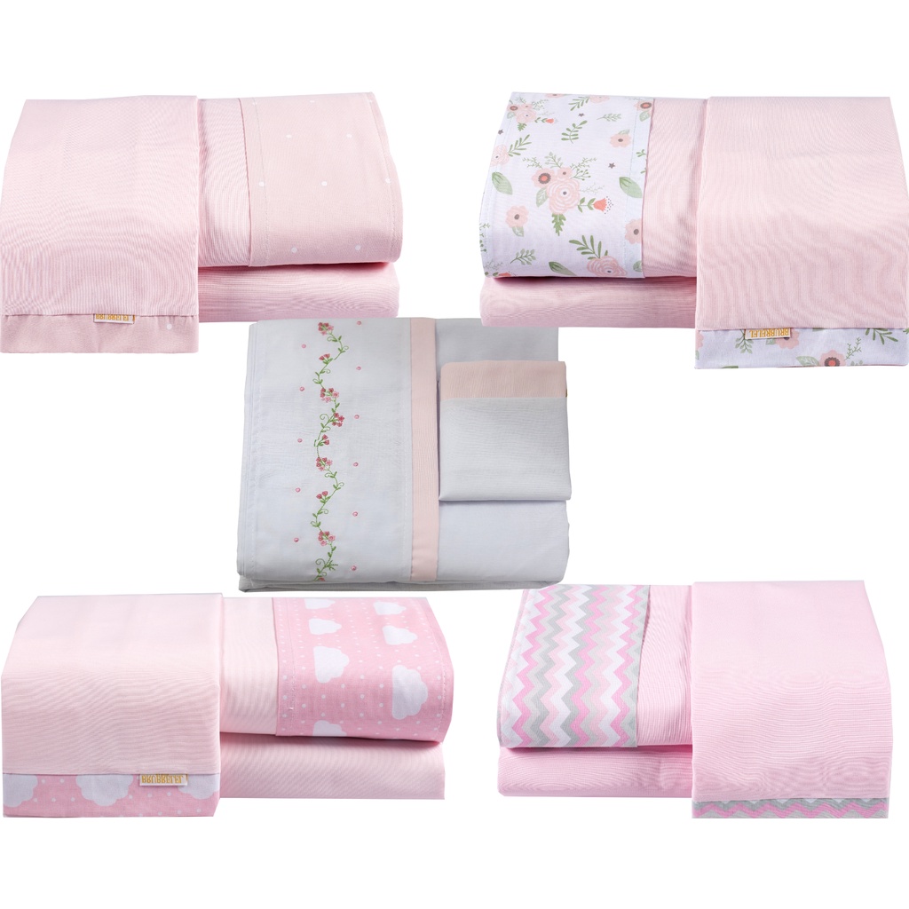 Jogo De Lencol Para Berço Americano 3 Peças Para Menina 1 Lençol Com Elástico 1 Lençol Com Vira Estampado E 1 Fronha