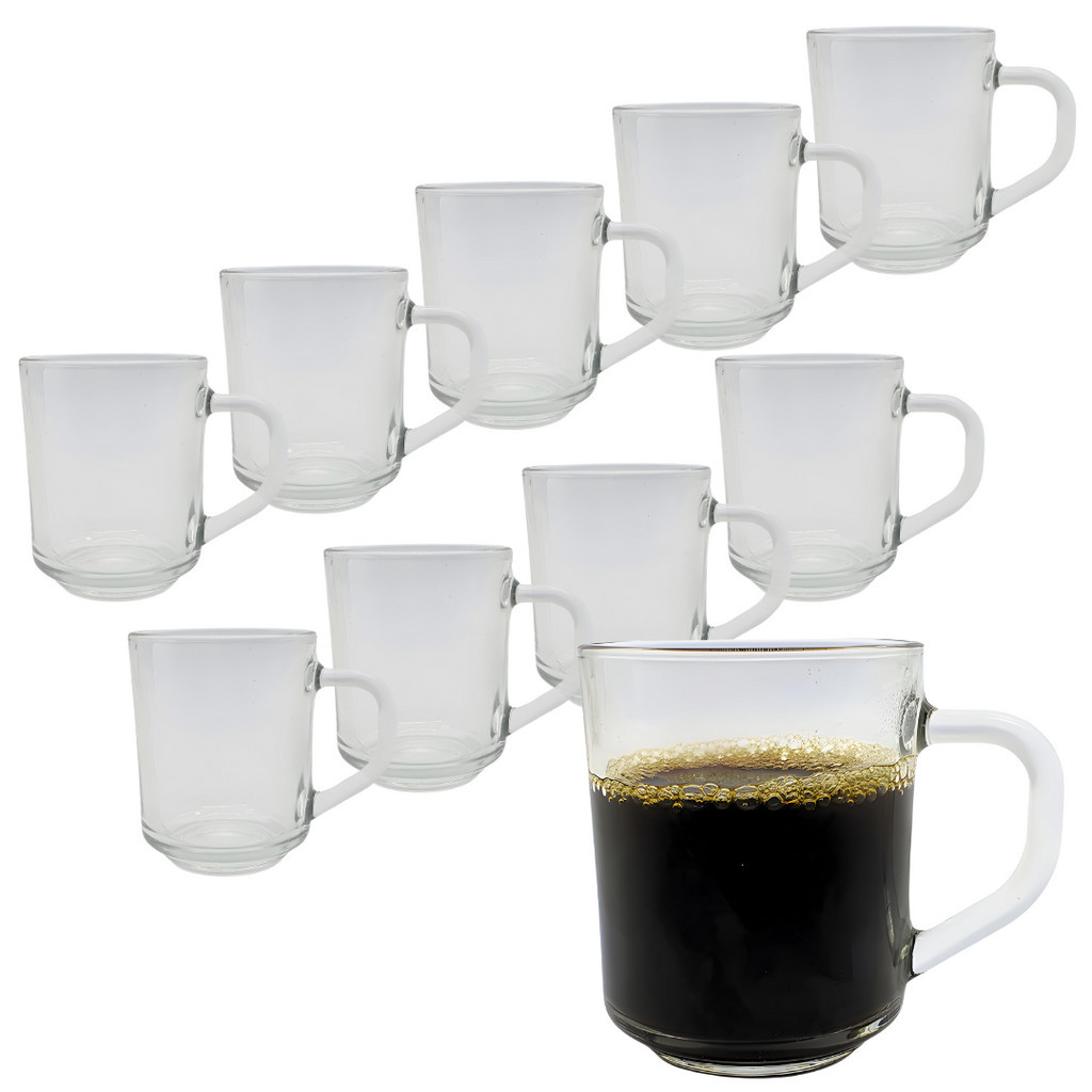 Kit 10 Caneca Copo De Vidro Transparente Café Chá Cappuccino Alça Base Redonda 250ml