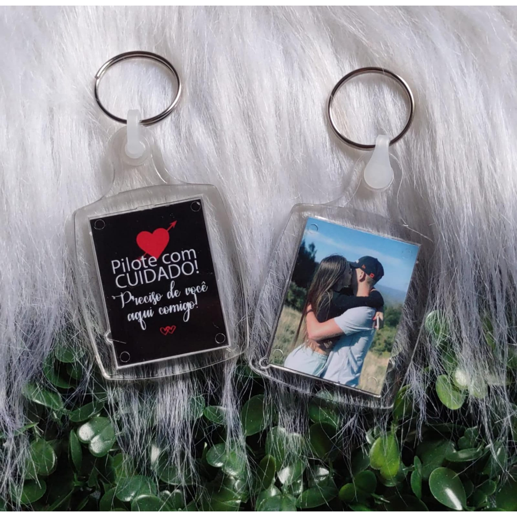 Chaveiro acrílico personalizado com foto e Frase Pilote com cuidado ou Dirija com cuidado