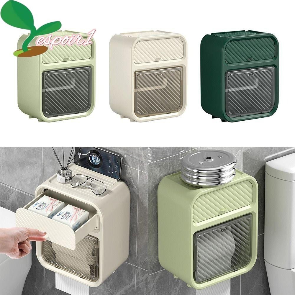Suporte De Papel ESPOIR , Caixa De Armazenamento De Tecido Higiênico De Plástico Montado Na Parede , Portátil , Sem Perfuração , À Prova D'água , Camada Dupla , Banheiro