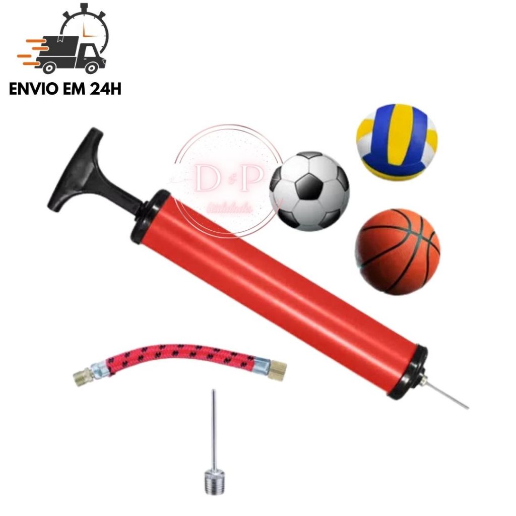 Bomba de Ar Encher Pneu Bike Manual com Kit com 2 Bico e Mangueira Para encher Bola de Vôlei Futebol Basquete Boia Colete