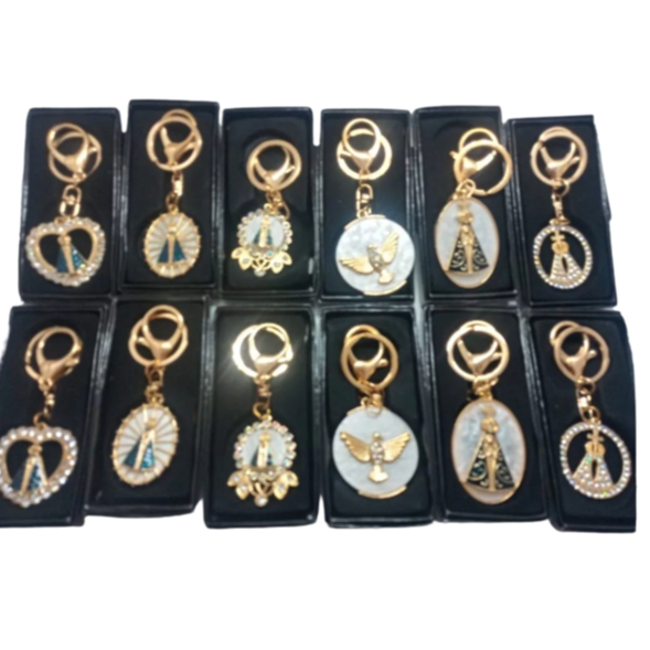 Kit 12 Chaveiros Dourado Strass E Mosquetão N.s.aparecida.