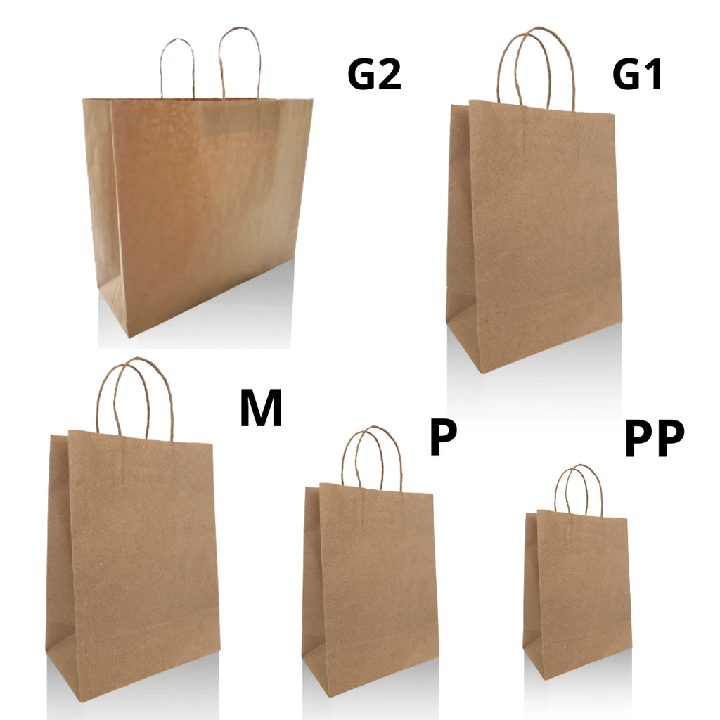 Sacola Papel Kraft ( PP/ P/ M / G) - KIT 10 / 50 UN.