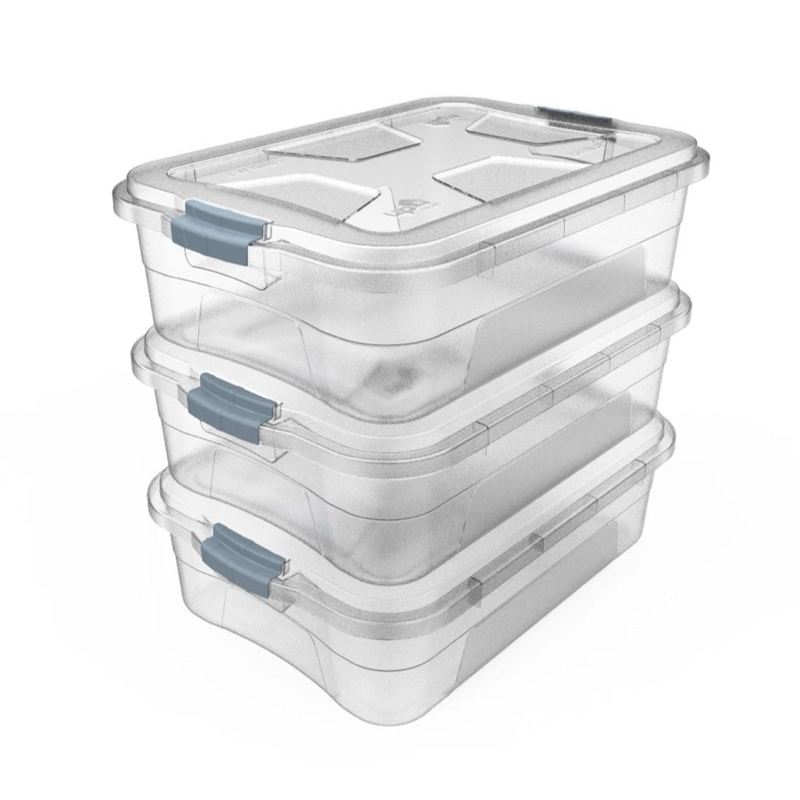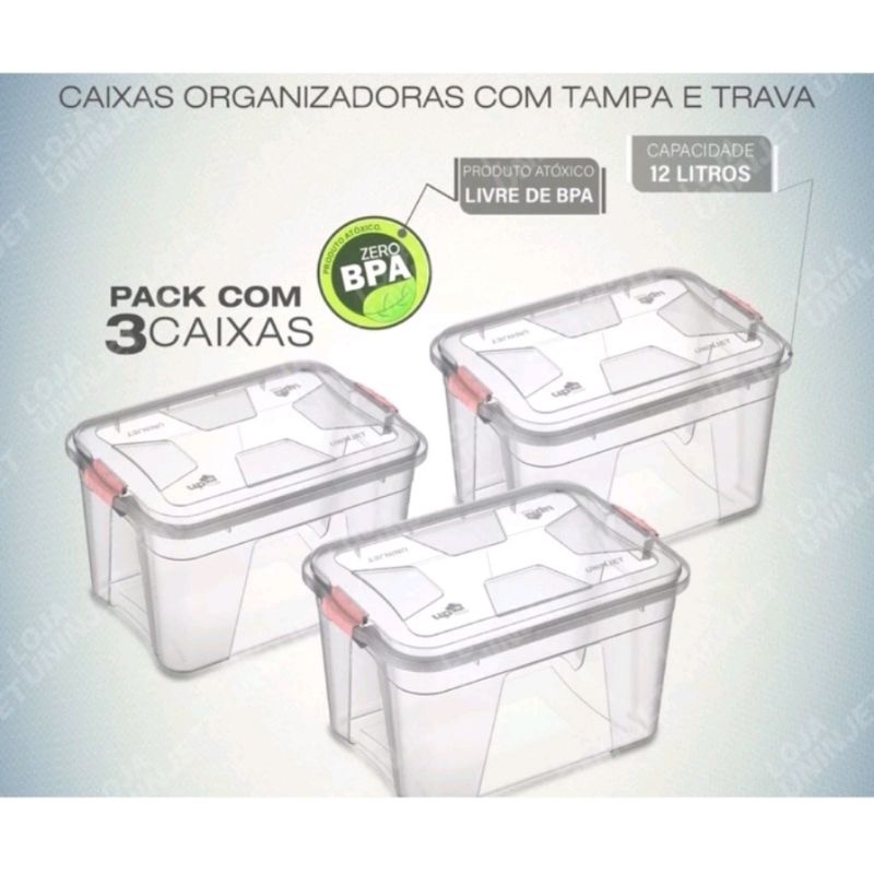 kit 3 Caixas Transparente Organizadoras 12 Litros Uninjet Multiuso Cesto Cristal Com Travas Armazenamento Brinquedos Ferramentas Roupas Alimentos