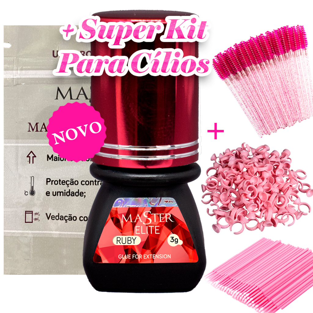 Cola Master Elite Ruby 3ml Alongamento Cilios Para Extensão Fios Postiços Adesivo Com Anvisa Volume Russo Secagem Rápida Profissional Lançamento Hs Chemical