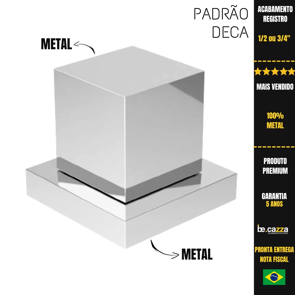 Acabamento de Registro Quadrado Alavanca C73 Pressão e Gaveta 1/2 3/4 Padrão Deca 100% Metal + Conversor Docol