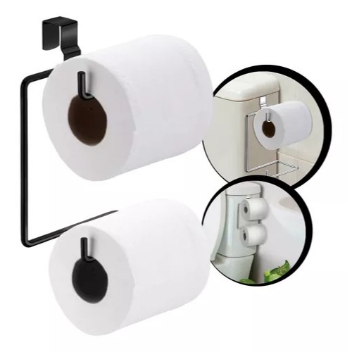 Suporte Porta Papel Higienico Duplo Aramado Para Caixa Acoplada Aço Preto Branco