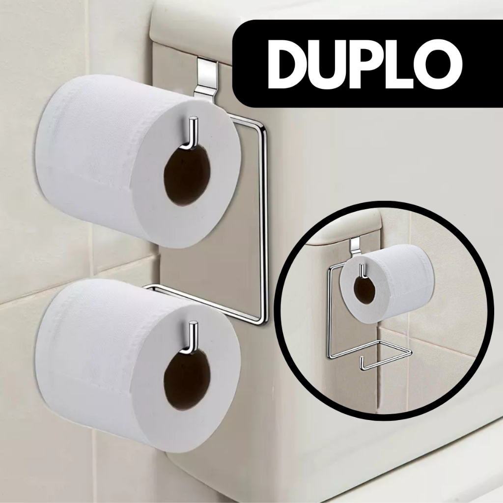 Suporte De Papel Higiênico Duplo Para Caixa Acoplada Aramado Cromado Pratico Porta Papel Higienico