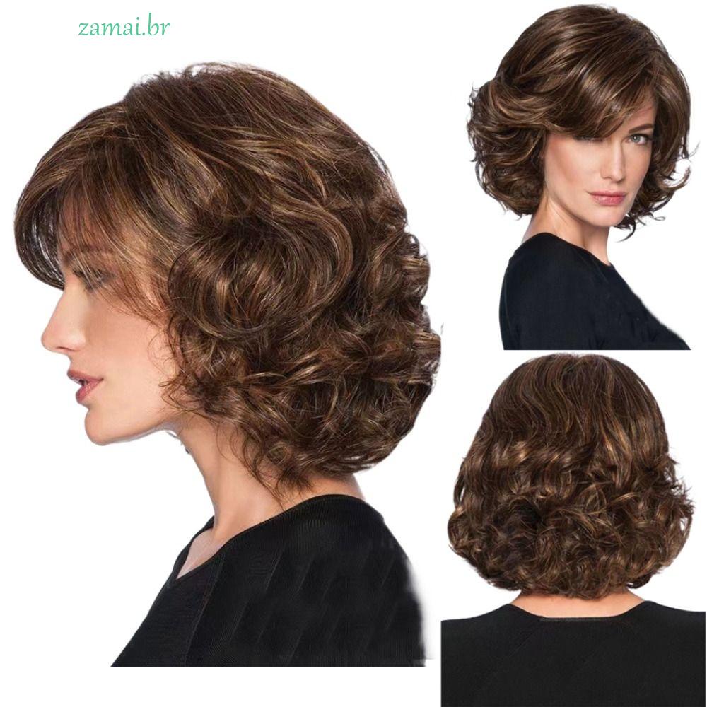 ZAMAI Peruca Curta Marrom Ondulada Diária Feminina Fofa