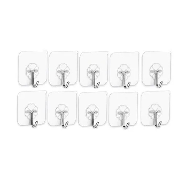 Kit 10 Ganchos Adesivo Parede Super Aderência - Transparente
