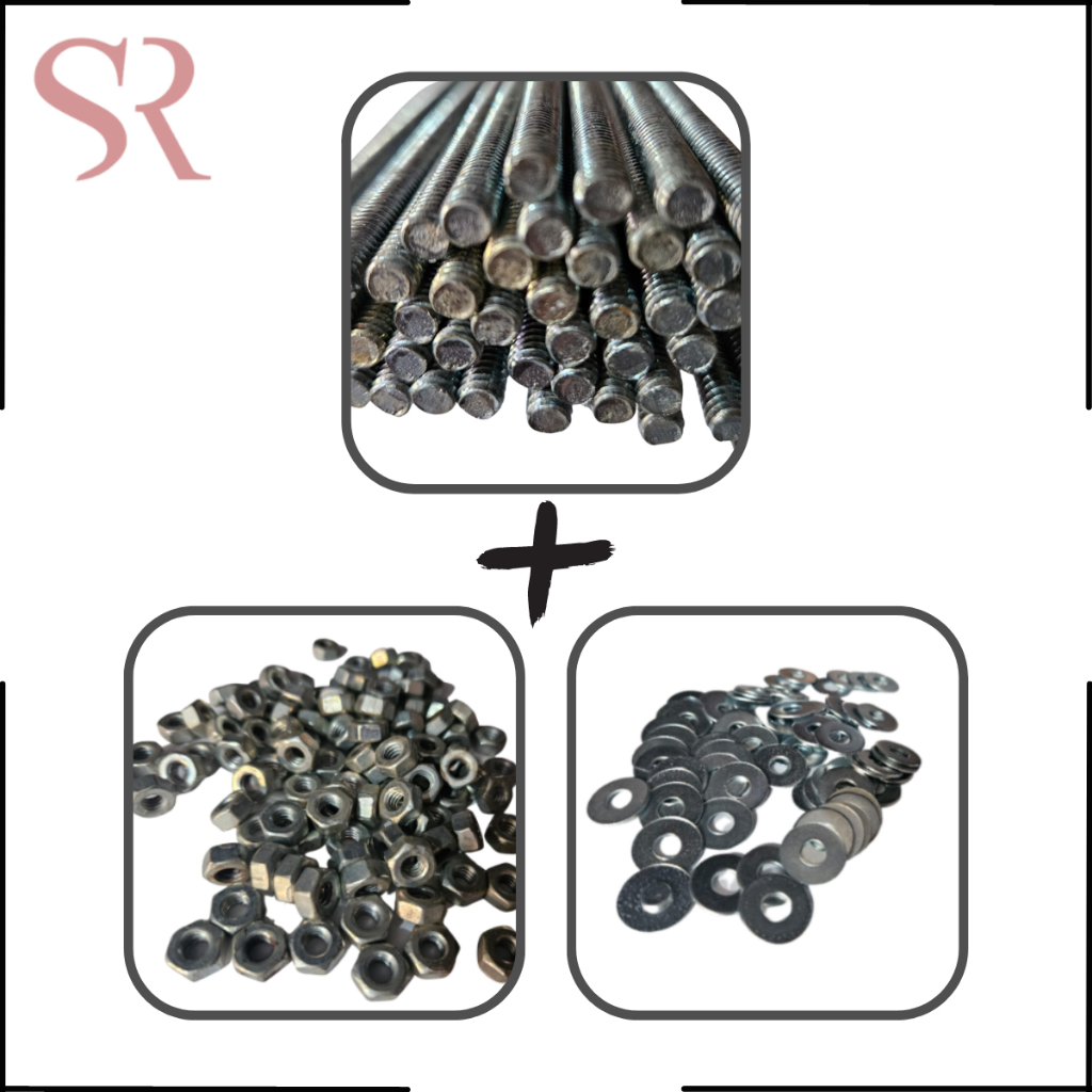 2 Barra Roscada 1/4 (6,35mm) com 1 Metro cada + 10 Porca Sextavada 1/4 e 10 Arruela lisa 1/4 Vergalhão