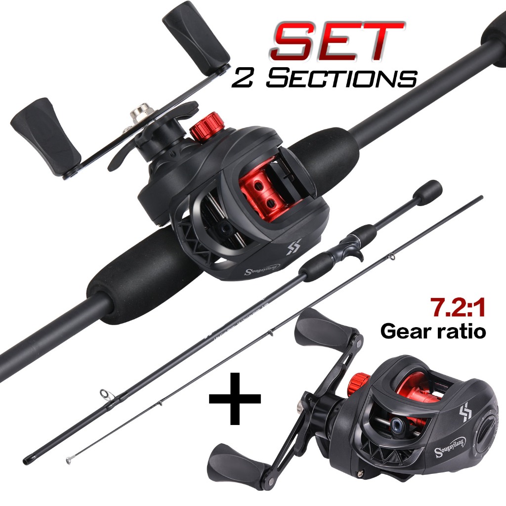 Sougayilang Vara De Pesca De Fundição Fibra De Carbono 10LB 2 Seções 1.8M Joran Pancing and Baitcasting Reel 7.2 : 1 Relação Engrenagem Max Drag 8KG Viagem Para Água Doce