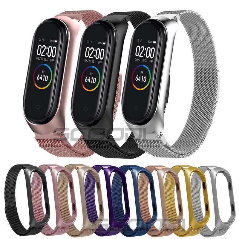 Pulseira Em Aço Inoxidável Com Pulseira Em Metal Magnético Para Adequado Xiaomi Mi band 6 5 4 3