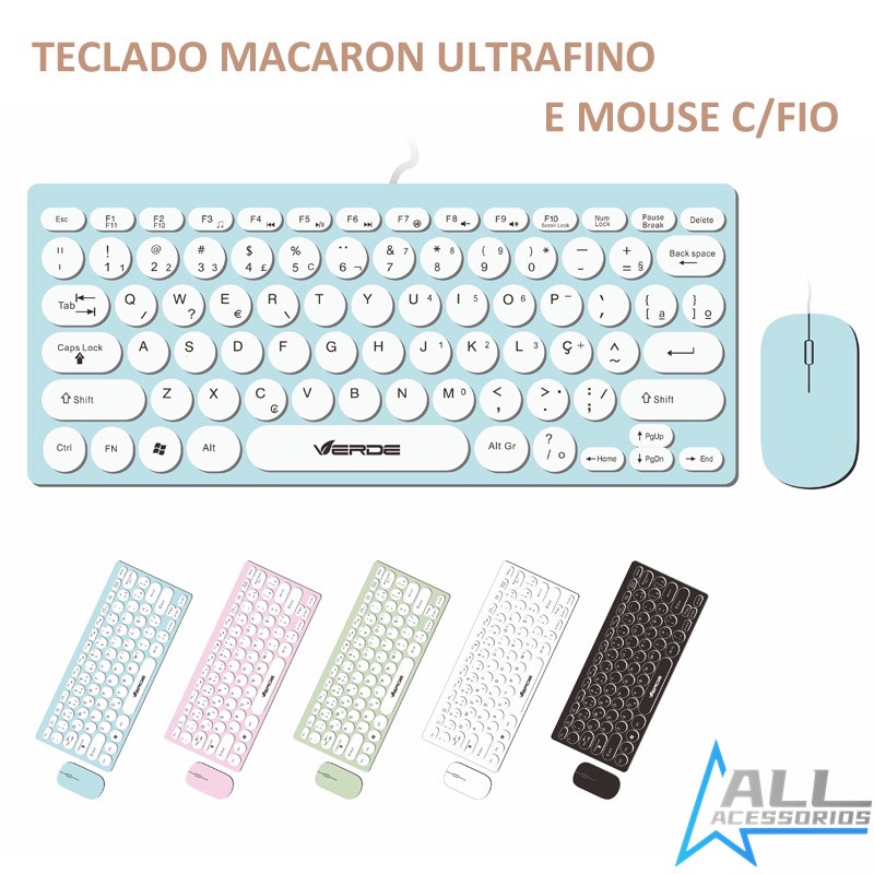 Teclado E Mouse Com Fio Macaron Básico Conexão Usb Padrão De Pc/Notebook Computador