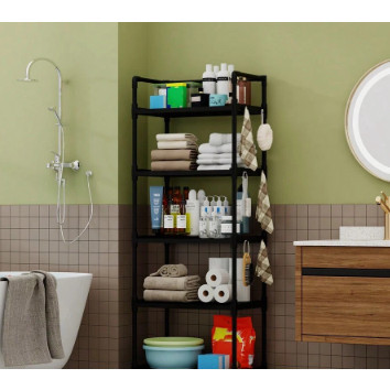 Estante Preta Organizadora de Plástico 5 Prateleiras com Pezinhos Multiuso Utilidades Para Organizar Sua Cozinha Lavanderia Quarto Garagem Salão Livros Ferramentas Objetos Sala Mercearia Quitanda Mercadinho Bomboniere Depósito Estoque Arrumação