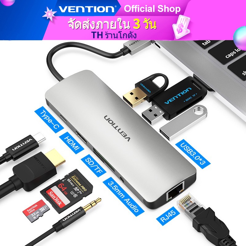Venção USB C Hub Tipo Para 3.0 + HDMI + RJ 45 Conversor De Adaptador De Macbook
