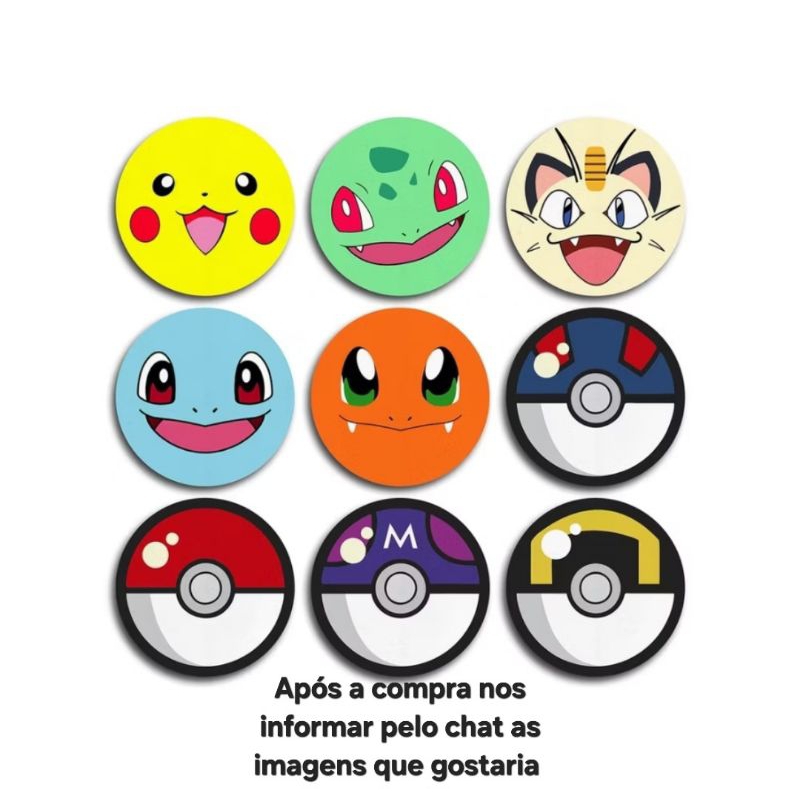 kit 6 Porta Copos Bolacha Pokémon Anime Geek Nerd Vários Modelos Neoprene 9cm