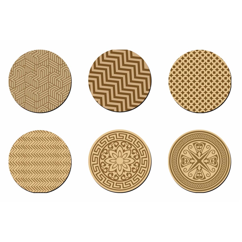 Kit 6 Porta Copos Bolacha Descanço MDF Decoração Mesa Posta Madeira Mandala Abstrato, Zig Zag Corte Laser