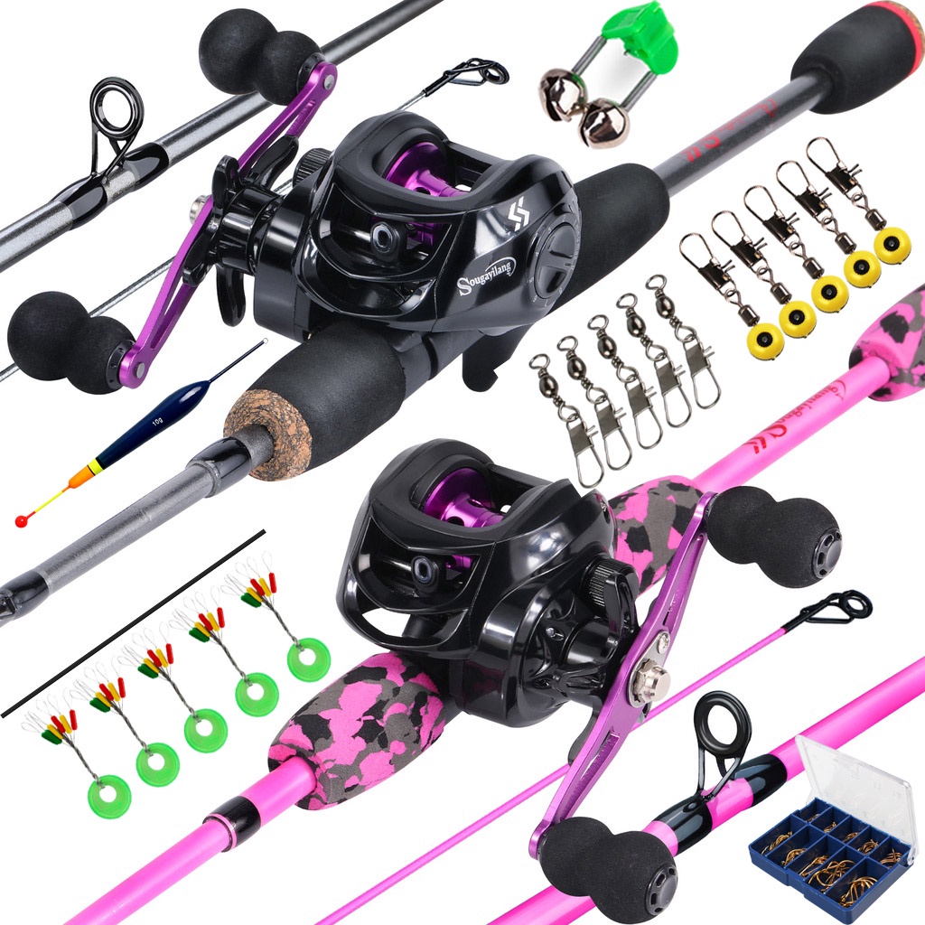Vara de pesca com carretilha Sougayilang 1.8m Conjunto De Carretel De Pesca Com Haste Fundida Isca Anzol 17 + 1 Rolamentos De Esferas 7.2 : 1 Relação Engrenagem Acessórios Rodas Metálicas