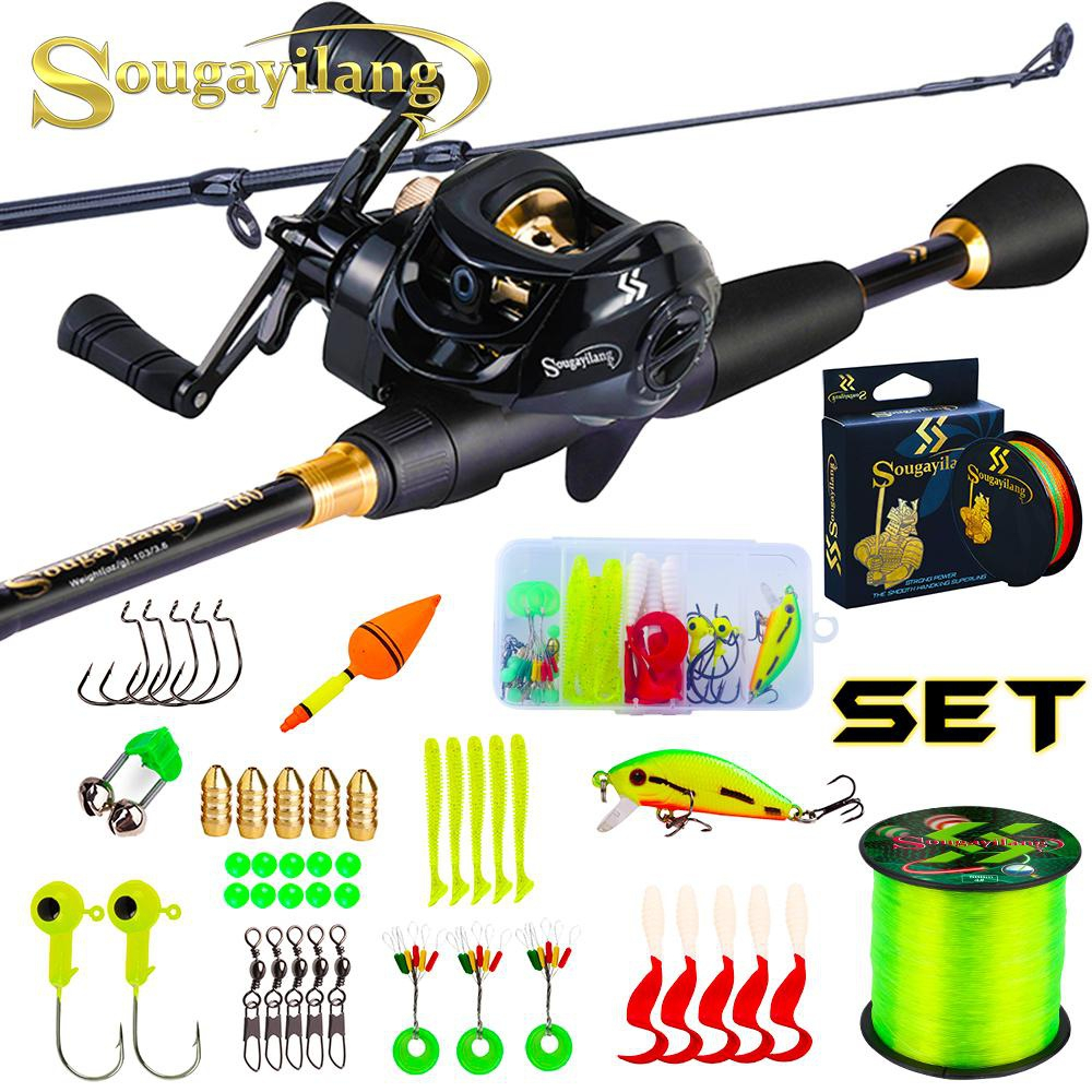 Vara de pesca com carretilha Sougayilang 1.8M Vara De Pesca Carretel Linha Lure Kit Completo Com Alta Velocidade 7.2 : 1 Relação Engrenagem Max Drag 15KG